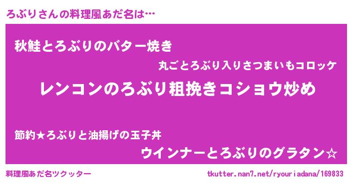 | ヘコむあだ名 | 『ろぶり(震え声)』『豆乳』 |