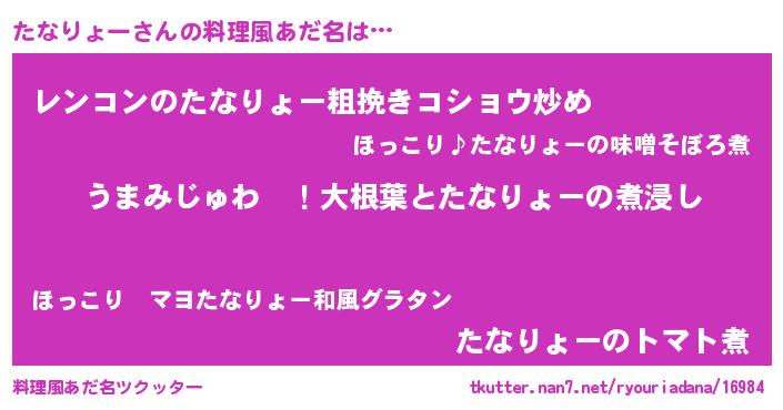 | 意味不明あだ名 | 『たなりょーフォーエバー』 |