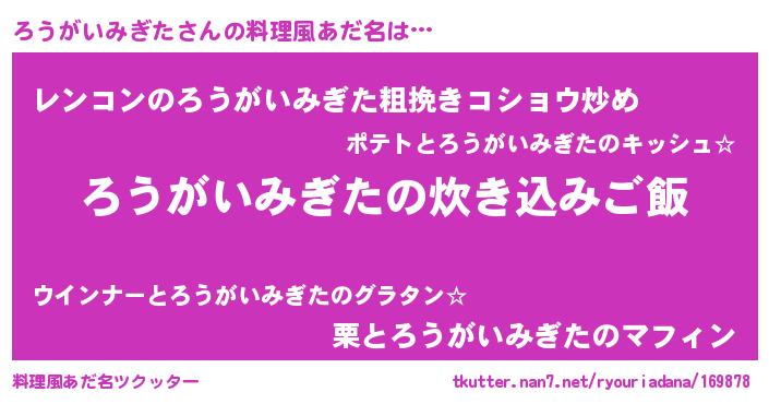 | 男性向けラノベタイトル風あだ名 | 『うちのろうがいみぎたが世界を掌握している!』 |