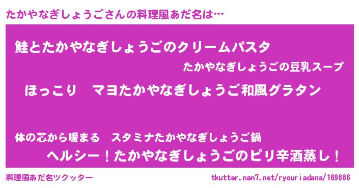 | 男性向けラノベタイトル風あだ名 | 『この素晴らしい世界にたかやなぎしょうごを!』 |