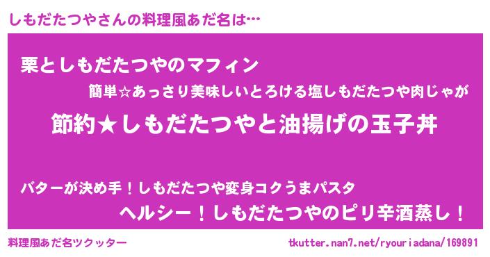 | 胡散臭い通販商品みたいなあだ名 | 『モテモテ間違いなしブレスレット…その名も「しもだたつや」』 |