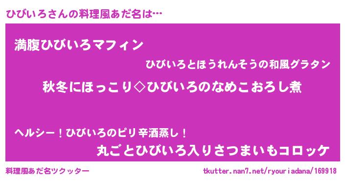 | 男性向けラノベタイトル風あだ名 | 『ひびいろに滅ぼされるだけの簡単なお仕事です』 |