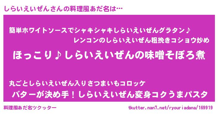 | 意味不明あだ名 | 『ペロリンしらいえいぜん』 |