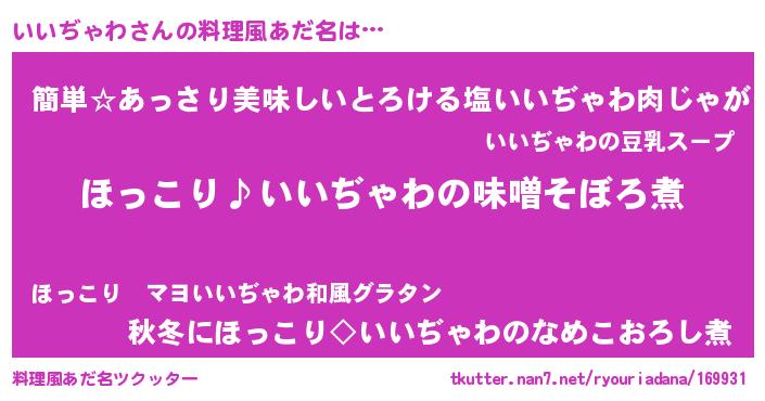 | ヘコむあだ名 | 『いいふぇ~』『いいぢゃわ(笑)』 |