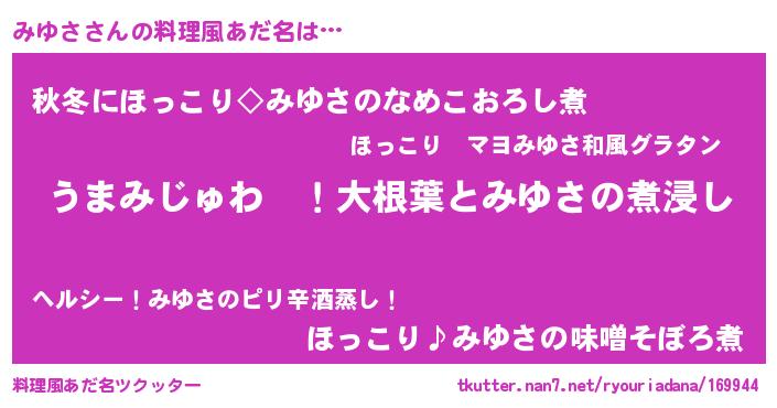 | ポケモン風あだ名 | 『ミユサダネ』『ミユゴンZ』 |