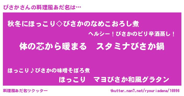 | ポケモン風あだ名 | 『ビサカダネ』『ビサゴンZ』 |