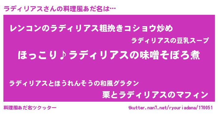 | 胡散臭い通販商品みたいなあだ名 | 『必ず成功する水晶球…その名も「ラディリアス」』 |
