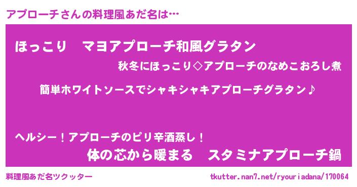 | ポケモン風あだ名 | 『ヒアプローチ』『アープイ』 |