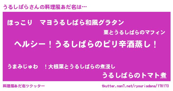 | 男性向けラノベタイトル風あだ名 | 『Re:うるしばらから始める異世界生活』 |