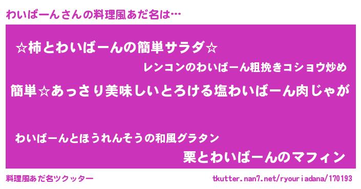 | 胡散臭い通販商品みたいなあだ名 | 『前代未聞の健康食品…その名も「わいばーん」』 |