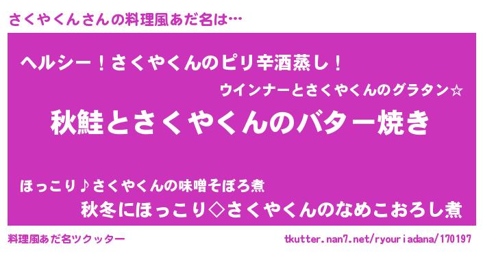 | ヘコむあだ名 | 『さくやくん(笑)』『酢こんぶ』 |