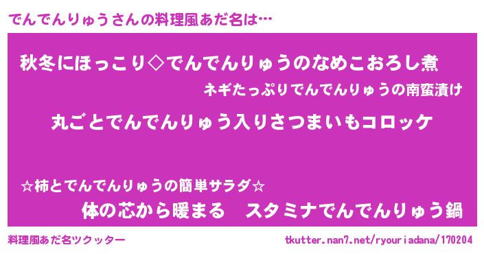 | 意味不明あだ名 | 『住所不定無職でんでんりゅう(5歳)』 |