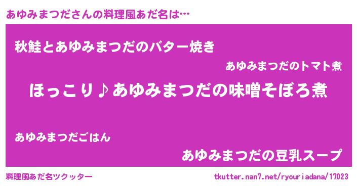 | 女子向けラノベタイトル風あだ名 | 『(仮)あゆみまつだのやんごとなき事情』 |
