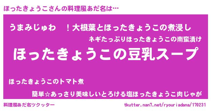 | 胡散臭い通販商品みたいなあだ名 | 『信頼と実績のサプリメント…その名も「ほったきょうこ」』 |