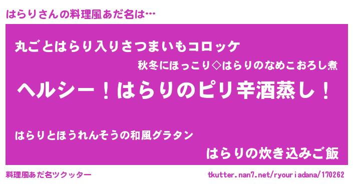 | 意味不明あだ名 | 『自称はらり』『住所不定無職はらり(9歳)』 |