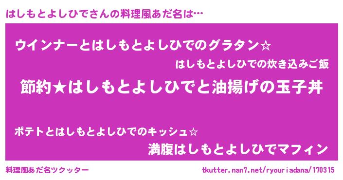 | 胡散臭い通販商品みたいなあだ名 | 『モテモテ間違いなし霊験あらたかなお札…その名も「はしもとよしひで」』 |