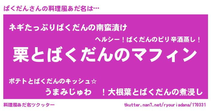 | ファンタジー風あだ名 | 『バクフェル』『エターナルバクダンー』 |