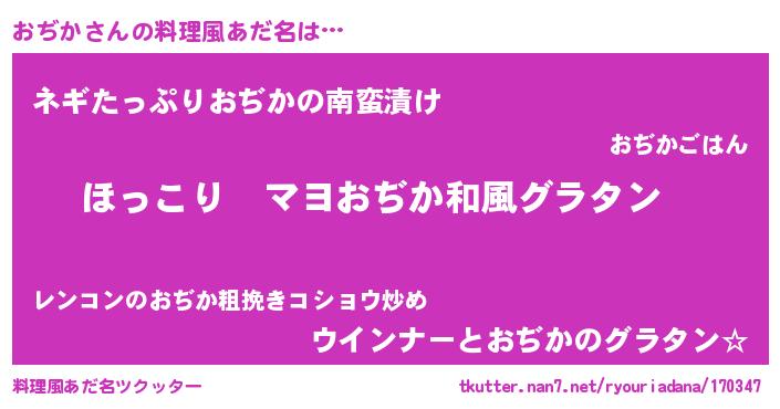 | 男性向けラノベタイトル風あだ名 | 『この素晴らしい世界におぢかを!』 |