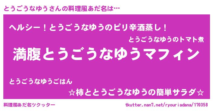 | ヘコむあだ名 | 『とうごうなゆう(笑)』『とうふぇ~』 |