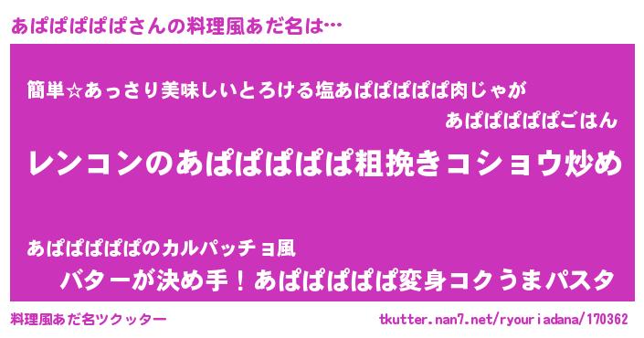 | 男性向けラノベタイトル風あだ名 | 『魔法科高校のあぱぱぱぱぱ』 |