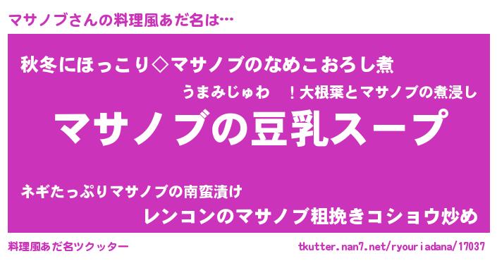 | 胡散臭い通販商品みたいなあだ名 | 『信頼と実績のサプリメント…その名も「マサノブ」』 |