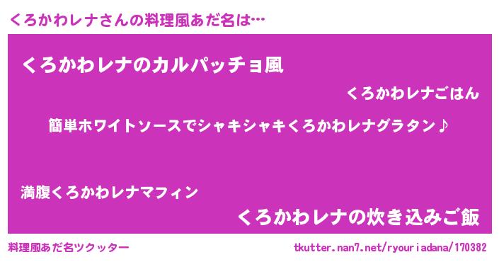 | 意味不明あだ名 | 『とにかく怪しいくろかわレナ』 |