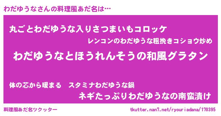 | 女子向けラノベタイトル風あだ名 | 『わだゆうなの玉の輿計画!』 |