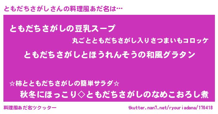 | ヒーロー風カッコイイあだ名 | 『炎刃騎士トモ』『仮面トモダー』 |
