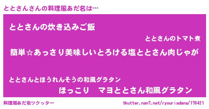 | ヘコむあだ名 | 『ととさん(笑)』『ととにー』 |