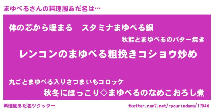 | 女子向けラノベタイトル風あだ名 | 『まゆベるなんてお断りですっ。』 |