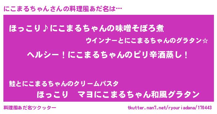| 男性向けラノベタイトル風あだ名 | 『Re:にこまるちゃんから始める異世界生活』 |