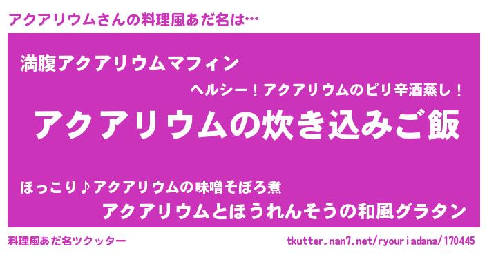 | 胡散臭い通販商品みたいなあだ名 | 『来世でも幸せになれる水素水…その名も「アクアリウム」』 |