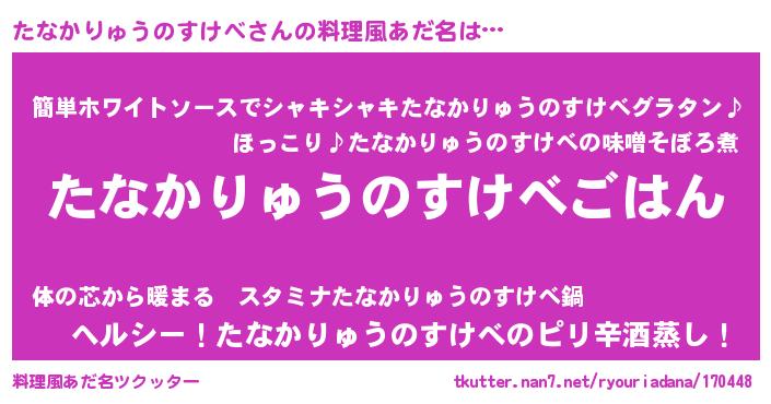| 胡散臭い通販商品みたいなあだ名 | 『信頼と実績のネックレス…その名も「たなかりゅうのすけべ」』 |