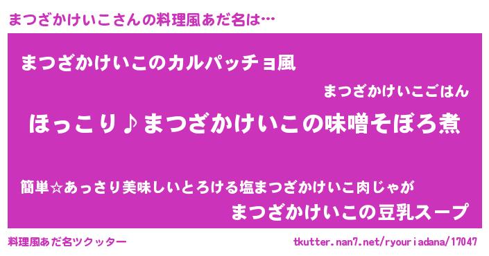 | 男性向けラノベタイトル風あだ名 | 『まつざかけいこの憂鬱』 |