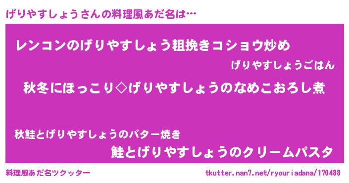| 意味不明あだ名 | 『自称げりやすしょう』 |