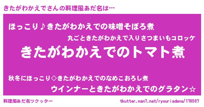 | 女子向けラノベタイトル風あだ名 | 『きたがわかえで夫妻のなれそめ』 |