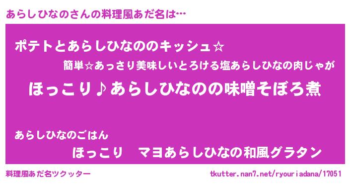 | 胡散臭い通販商品みたいなあだ名 | 『必ず成功するブレスレット…その名も「あらしひなの」』 |