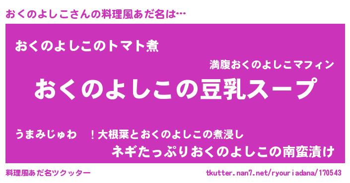 | 胡散臭い通販商品みたいなあだ名 | 『信頼と実績のサプリメント…その名も「おくのよしこ」』 |