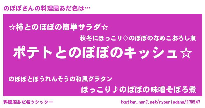 | ピコ太郎風あだ名 | 『ノボ六郎』『ノコ二郎』『ピコノ郎』 |