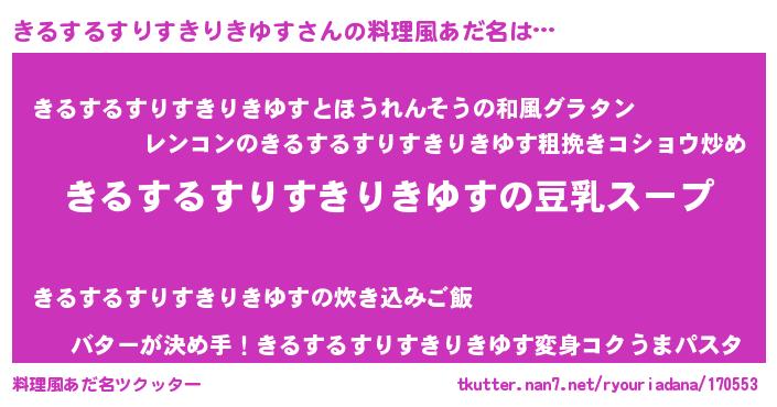 | 男性向けラノベタイトル風あだ名 | 『ダンジョンにきるするすりすきりきゆすを求めるのは間違っているだろうか』 |