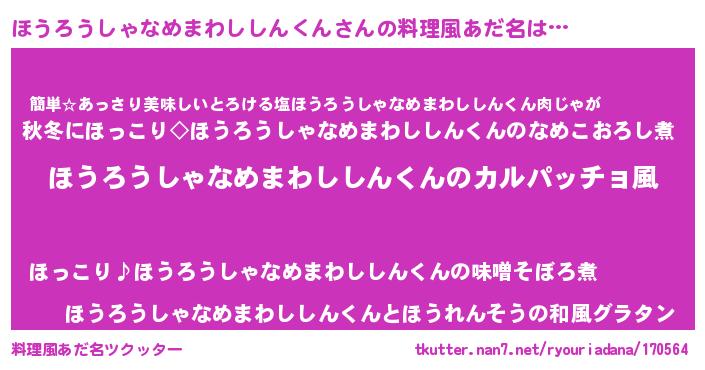 | 意味不明あだ名 | 『住所不定無職ほうろうしゃなめまわししんくん(85歳)』 |