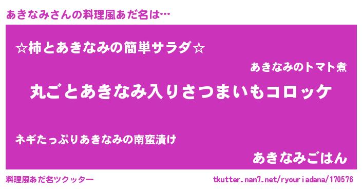 | ヒーロー風カッコイイあだ名 | 『仮面アキダー』『正義の使者あきなみ』 |