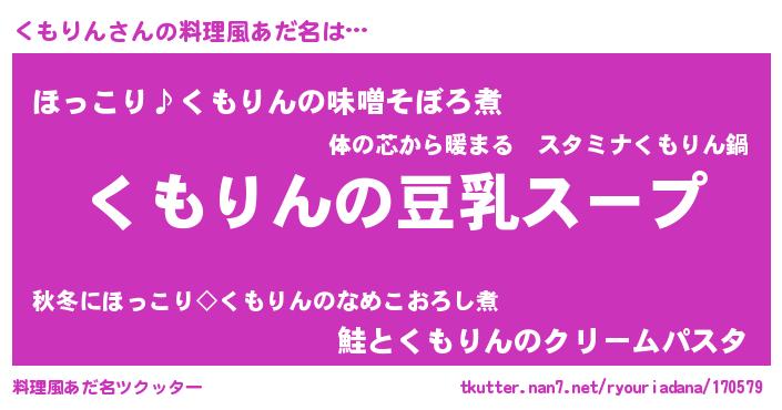 | 男性向けラノベタイトル風あだ名 | 『ダンジョンにくもりんを求めるのは間違っているだろうか』 |