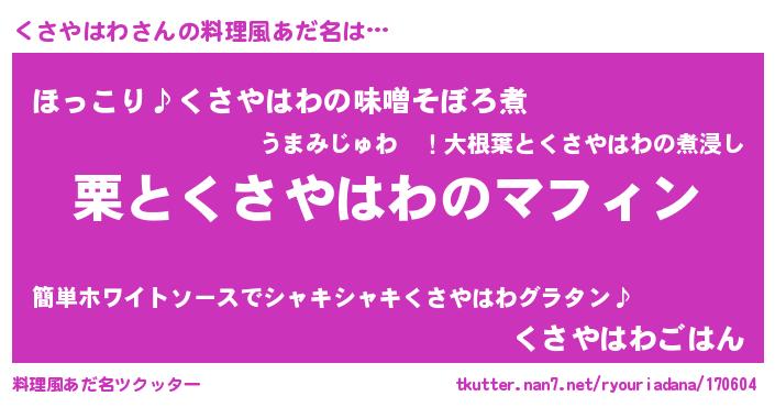 | ヘコむあだ名 | 『くさっふぃ~』『つくし』『くさを』 |