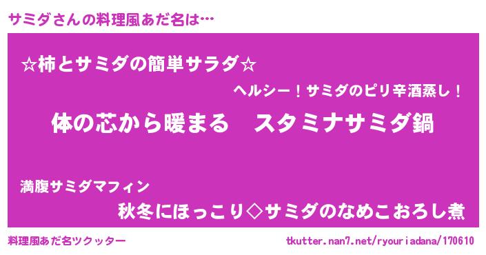 | 女子向けラノベタイトル風あだ名 | 『サミダの雑貨屋さん』『闇のサミダ』 |
