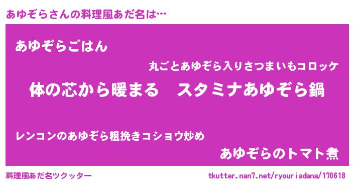 | ヒーロー風カッコイイあだ名 | 『ウルトラあゆぞらマン』『仮面アユダー』 |