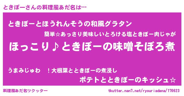 | ヘコむあだ名 | 『ときにー』『ときぷりん』 |