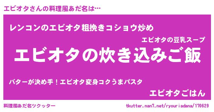 | ピコ太郎風あだ名 | 『エビ次郎』『エエ太郎』『エコ六郎』 |