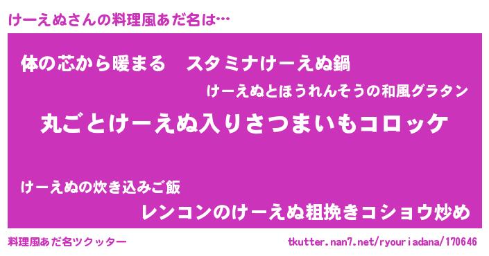 | 意味不明あだ名 | 『住所不定無職けーえぬ(74歳)』 |