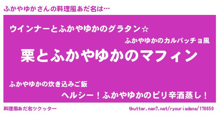 | 胡散臭い通販商品みたいなあだ名 | 『世界が平和になる高級そうな皿…その名も「ふかやゆか」』 |
